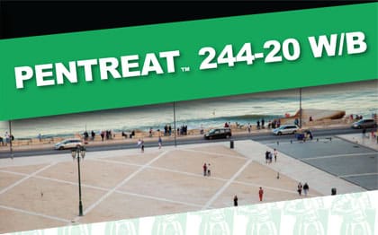 PENTREAT 244-20 W/B – This water-based, 20% active silane, water-repellent concrete sealer helps prevent rebar corrosion from chloride. It also prevents scaling, spalling, freeze-thaw damage, and other issues impacting your concrete’s integrity.